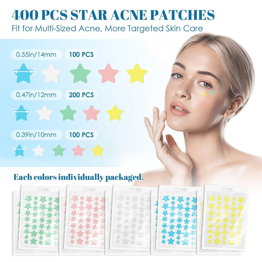 Multi-Size Pack: 400 patches (10mm/12mm/14mm) fit all acne types -