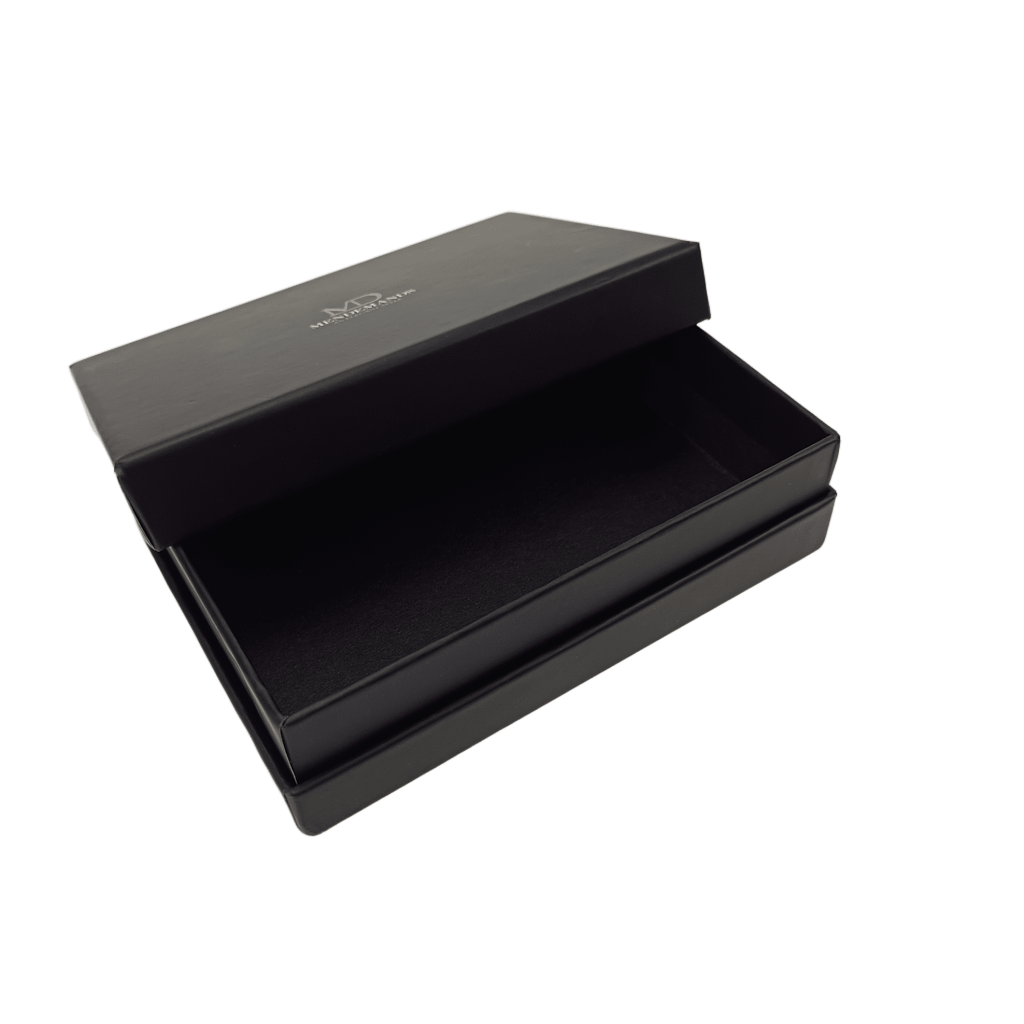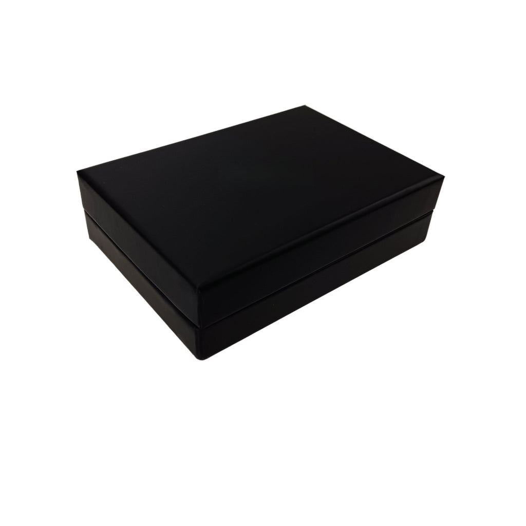 Present your products with sophistication and elevate the unboxing experience. This premium gift box features a classic and secure "heaven and earth" (lid and base) design, crafted from high-quality, sturdy matte black paperboard. The minimalist yet elegant exterior provides a flawless canvas for your brand identity.